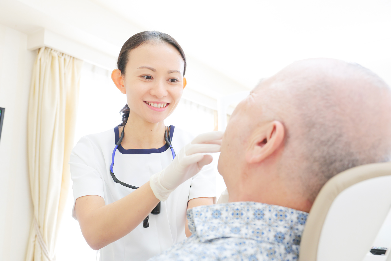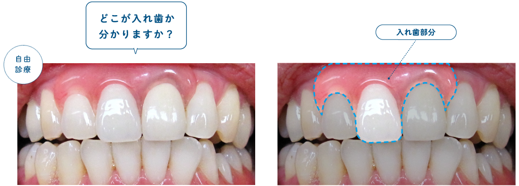 入れ歯が目立ってしまう主な原因は、支えとなる金属のバネ(クラスプ)にあります。この金属のバネを歯茎と自然に馴染むピンク色の樹脂に置き換えた入れ歯をノンクラスプデンチャーと言います。見た目が自然で、人前で話す機会が多い方や接客業に従事する方にも安心して使用いただけます。